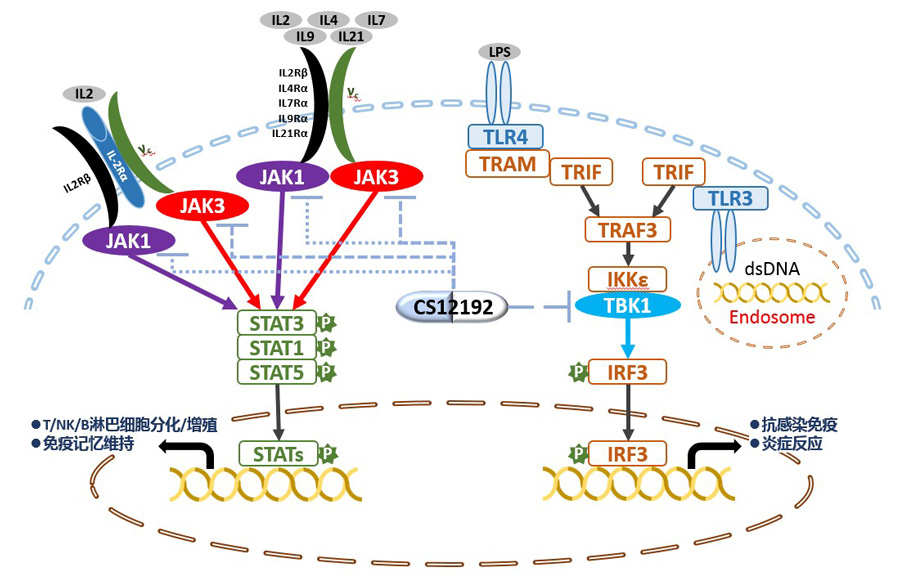 与已上市的JAK激酶抑制剂相比,CS12192不但能有效抑制免疫细胞过度活化介导的炎症,同时通过抑制TBK1减轻免疫细胞的组织侵袭,带来更好的疗效和安全性,有望为自身免疫相关性疾病临床治疗提供一种新的差异化治疗选择。